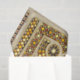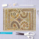 Personalizable mediaeval mosaic with geometric motifs displaying alternative patterns of glass mosaics and stones - gold, red and white marble, or granite and travertine. Press the "Customise it!" button to play with the pattern - rotate it, resize it, and create your unique design.