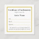 Customisable miniature Certificate of Authenticity cards for artwork in a square gold design.