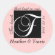 Customisable Monogram F Wedding Sticker. Customise with your names, wedding quote and date. Choose light background colours.