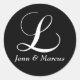 Customisable Monogram Wedding Sticker. Customise with your names and dark background colour