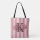 Customisable Monogram Pink Stripes Cabbage Roses Tote Bag