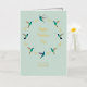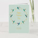Customisable light blue Mother's Day Card with gold foil elements and gold lettering and hand-painted watercolor hummingbirds. The inside is left blank for a handwritten message.