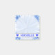 This notes design features a pattern with lines coloured various shades of blue bursting out from a central point. It also features a custom name near the bottom in blue coloured text between two heart shapes, within a white-coloured band. The middle features a circular, lighter-coloured area. [~Z0000159]