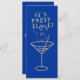 Customise these party invitations any way you like! On one side, a hand drawn martini glass and the words IT'S PARTY TIME! Background is blue (customisable). On the other side, text (customisable) gives details of the party. Background is blue (customisable). It's customisable and great for New Year's Eve parties or any other fun event!