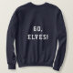 Stylised Striped "North Pole" with the words "North Pole University" wrapped around it. Says "GO ELVES" on the back - customise with your name or whatever.