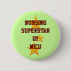 Show your favourite nurse how much he/she is appreciated with this department-specific pin-back button. The button has three gold stars and the words "Nursing superstar of" followed by customisable text that can be easily changed to any department or floor. The possibilities are endless. The background colour can also be changed to suit your own tastes.