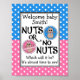 Editable gender reveal poster. You can edit the first and last 2 lines of text, the background image is fixed. For a Nuts or No Nuts themed gender reveal.