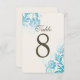 Classy customisable Ombre Teal Wedding Table Card Numbers with a beautiful Floral print. Collection created by Colourful Designs Inc. Copyright 2014.
