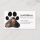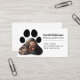 A minimalist and modern business card template for a professional pet sitter. The front of the card features a large, striking black paw print that elegantly frames a customisable photo, allowing you to showcase your connection with animals. The clean layout includes space for your name, title, and contact information. The back of the card provides a simple, clear list of services, making it easy for clients to understand exactly what you offer. This design is perfect for anyone in the pet care industry, from dog walkers and pet sitters to animal groomers.