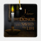 Here's an elegant customisable ornament that will surely highlight your Christmas tree. What better way to celebrate the Gift of Life you have received and honour your donor? "I Honour the Donor Who Saved My Life" adorns the front and a custom photo of your donor is on the back of this Christmas ornament. A beautiful scene with a peaceful candle lighting the scene and shining out the window. A touching metaphor for the light our donor has given us. This Christmas ornament is only available from KNS Transplant Gear and the KNS Christmas Store! Makes a perfect gift for any transplant recipient...kidney, liver, heart, or lung, or anyone who wants an elegant way to say thank you to your donor during the holidays. This donor awareness and transplant ornament is truly special and will bring an extra touch to your Christmas tree.