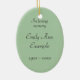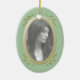 Soft Green with Gold Leaves Oval Photo Ornament Create a cherished memory of someone special with a customisable photo ornament. Designed especially for remembrance and memorial keepsakes, this ornament has a soft green background with a gold look photo frame to which you can add a photo of your loved one. A golden leaf detail surrounds the frame. On the reverse is the text 'In loving memory' and customisable text boxes to add a name and dates. A lovely way to remember and celebrate a life. Available in a range of soft and classic shades for male or female memorials.