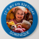 Customisable photo, name and age - IT'S MY BIRTHDAY - button. Blue frame with white text.