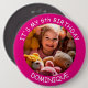 Customisable photo, name and age - IT'S MY BIRTHDAY - button. Hot pink frame with white text.