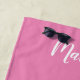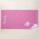 This pink beach towel is decorated with your name, a delicate white dandelion and blowing seeds, making it the perfect summertime accessory.