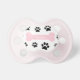 You love your dog, and so does your baby. Show your pet pride with this pink customisable dog bone pacifier with dog prints. Perfect for your baby girl.