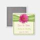 The text on this pink gerbera daisy save the date magnet is fully customisable. You can change it using the personalise option. For more extensive changes to the magnet, including changing the background colour, font, font colour, or font layout, choose the customise option. This is a great save the date magnet for a spring or summer wedding with a pink and green gerbera daisy theme. Simple, pretty, and cheerful. This magnet is currently customised for a wedding, but would also work great for a bridal shower, special birthday, anniversary, or garden party. All you need to do is change the wording. It would also make a great wedding favour if you changed the text to remove the words "save the date".