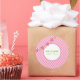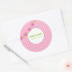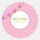 Customisable Pink Heart Chequerboard Welcome Baby Classic Round Sticker