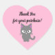 A customisable cute pastel pink Thank You sticker with grey cat to express your appreciation towards your customers for purchasing your products. Your customers will love these thank you stickers.