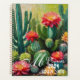Customisable bohemian diary, designed for the free-spirited and nature-loving. Detailed illustration of cacti and succulents in full bloom, with green and red tones, symbolise resilience and flourishing in any circumstance.