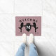 Cute door mat featuring an illustration of Poodle silhouette (Continental cut). Customisable background colour and text. Perfect gift for the dog lover or Poodle owner.