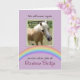 Add a Photo Rainbow Design Card -- Mauve Add your own pet's photo to this remembrance card featuring a hopeful and inspiring rainbow bridge design. Create a keepsake to remind yourself or someone you care about of a loved friend, whether furred, feathered or finned. Or send as a comforting sympathy card for someone who is coming to terms with pet loss. This card shows a pretty palomino horse but remember you can upload a picture of your own and change it to any pet: dog, cat, hamster, fish, bird, rat, bunny rabbit, horse, or a more exotic animal. All of them can rest in the peace that lies over rainbow bridge.