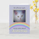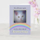Add a Photo Rainbow Design Card -- Blue Add your own pet's photo to this remembrance card featuring a hopeful and inspiring rainbow bridge design. Create a keepsake to remind yourself or someone you care about of a loved friend, whether furred, feathered or finned. Or send as a comforting sympathy card for someone who is coming to terms with pet loss. This card shows a sweet white cat but remember you can upload a picture of your own and change it to any pet: dog, cat, hamster, fish, bird, rat, bunny rabbit, horse, or a more exotic animal. All of them can rest in the peace that lies over rainbow bridge.