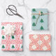 Customisable Red and White Merry Christmas Tree Wrapping Paper Sheet