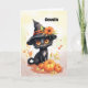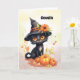Customise this card with any relationship. It says “Cousin” but you can easily change it to any relationship or even a name! Enjoy this bewitching card, starring a cute black cat with enchanting eyes, wearing a hat embellished with pumpkins and an orange daisy. Magical memories await a special person!