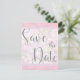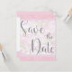 This customisable Save the Date Announcement template has a muted photograph of tiny pink flowers trimmed with transparent pink edges, copy is editable and customisable, just click the Personalise button to make this your own and congratulations, enjoy!