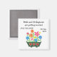 A pretty, customisable 'Save the Date' fridge magnet, with a window box full of colourful flowers, from a handpainted paper collage by Judy Adamson