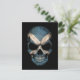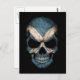 This unique design by artist Jeff Bartels features the flag of Scotland on a dark skull. Rough textures and large cracks give the skull an old and damaged appearance. The background can be customised to any colour you like to make it your own. This unique Scottish flag skull is a stylish way to show off your pride and patriotism.