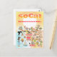 Colourful view of Southern California - wacky characters frolic on the beach and desert of SoCal showcasing Los Angeles, Orange County, Santa Barbara, San Diego, Riverside, Palm Springs, Anza Borrego and Joshua Tree parks - also the border cities of Tijuana, Tecate and Mexicali. This SoCal map has it all – a surfer hangs ten, a killer whale leaps out of the water, zoo animals greet the tourists, a beach couple play in the surf as a T-Rex roars a challenge and a tank rumbles into position and much more…