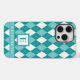 Customisable Teal Blue Green White Argyle Pattern iPhone Case