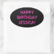 Customisable Text Happy Birthday to Any Name Oval Sticker