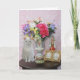 Customisable card with Missy by flowers in a pretty vase, a figurine, a gold picture frame, and a music box. You can customise the text.