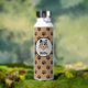 Cute brown, black dog paw print custom water bottle. Personalise it for your pet, or as a gift for someone else. The stainless steel bottle is great quality.