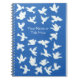 A pretty Spiral Notebook to personalise, with white doves on a bright blue background, from a handpainted paper collage design by Judy Adamson.