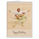 You can personalise this gorgeous artwork of ballet dancers to create a special greeting for a relative or friend. The ballerina wears a beautiful pale gold tutu dress with a tiara, and her dance partner is dressed as a prince in boots and an embroidered shirt. The lovely couple are in the impressive 'fish dive' pose, where the female dancer balances on the knee of her male partner while he stretches out his arms. This is an original artwork by InkArabesque, recreating the soft, romantic look of art pastels. All text is customisable and the card can be used for an occasion of your choice (not just birthdays).