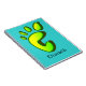A cool illustration of a large footprint in vibrant gradient lime green with a dark grey drop shadow on a cheerful tranquil turquoise background. Customise with a name or other text.