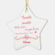 Pretty Christmas Ornament in a star shape. Features a Nursery rhyme, "Twinkle twinkle little star do you know how loved you are." In pink lettering.