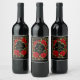 Customise Elegant Red Roses Gold Framed Black Wine Label