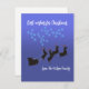 Traditional design: Santa's sleigh is pulled through a starry night sky by four strong reindeer. Customise your Christmas greeting and signature.