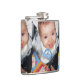 Well made flask, a little better than I had expected. Flask came in clear plastic box which gave it a nice presentation when I took it out of the zazzle packaging. Image is not printed on flask but on sticker. Don't know how this will hold up I haven't used it yet. This would make a Great gift! I plan to purchase more for friends! Cheers. I thought a little brighter than computer. Very crisp, writing wasn't