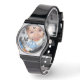 Customise it Your photo monogram black numbers Wrist Watch. Photo gift for anyone, change photo and add text.