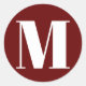 Customise monogram initial number burgundy maroon white Classic Round Sticker