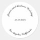 Customise Name, date black curved letters wedding Classic Round Sticker