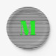 Customise neon green monogram black white stripes paper plate