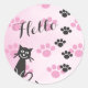 Customise Text Cat © Pink Black Paw Prints Classic Round Sticker