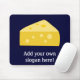 Add a slogan or name to create a personalised gift with a cheese theme. Image shows a big wedge of Swiss style cheese with holes.