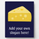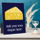 Add a slogan or name to create a personalised gift with a cheese theme. Image shows a big wedge of Swiss style cheese with holes.